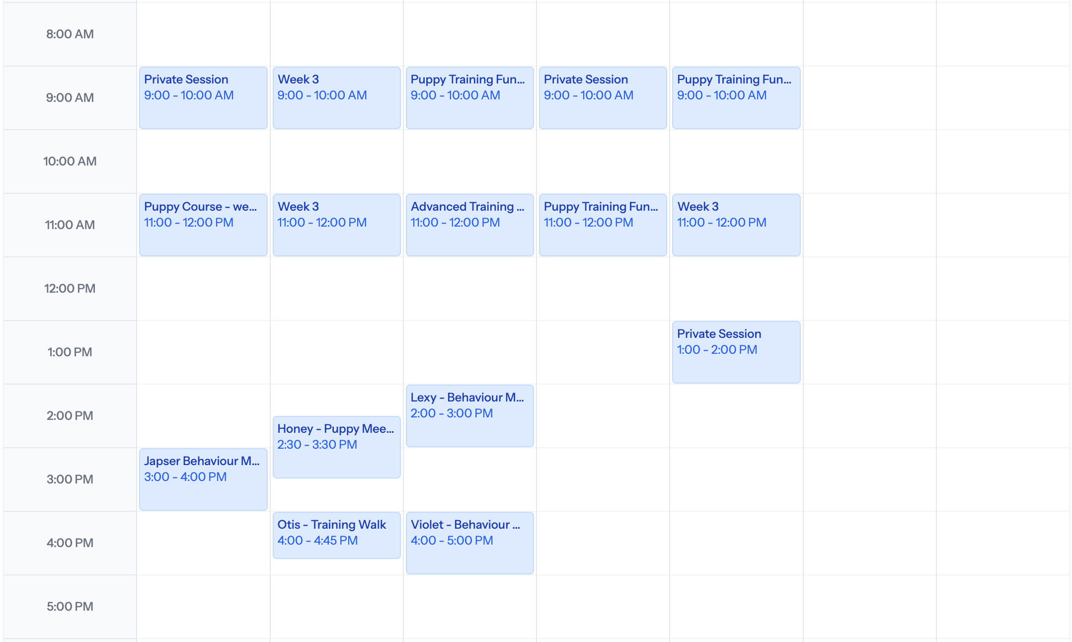 Your calendar is the heart of your business. With DogTrainerSuite, you can easily add one-off sessions, create multi-week courses, and keep track of who is attending each one.